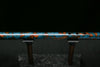 Bright blues shine against the spiral flames on this stunning patina.