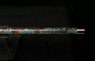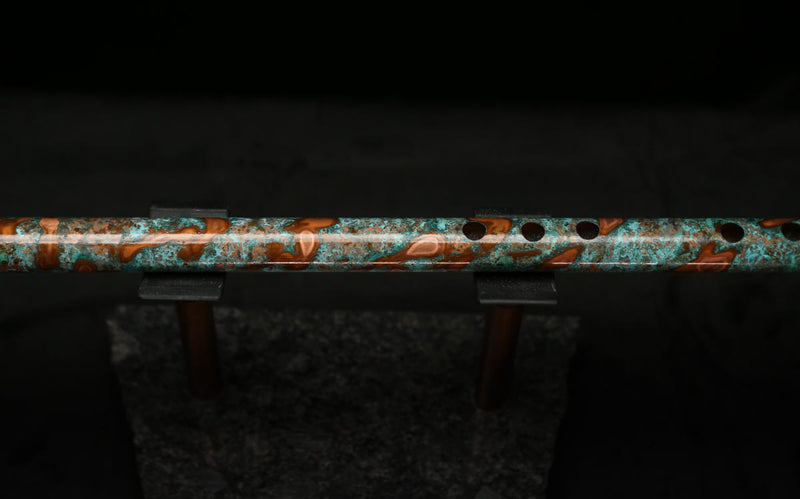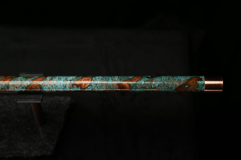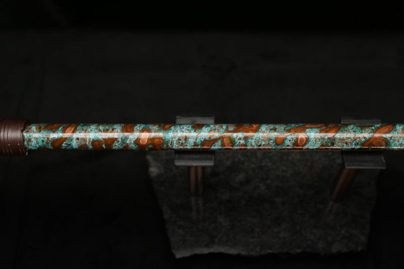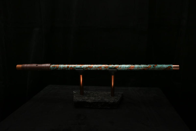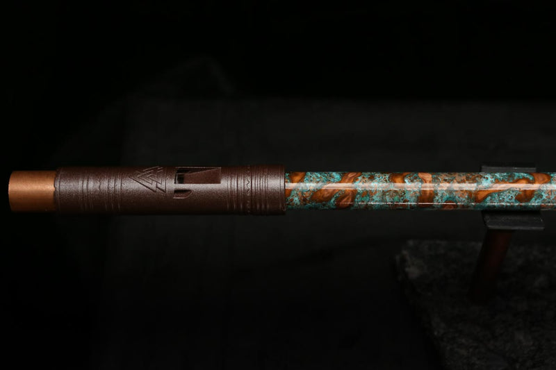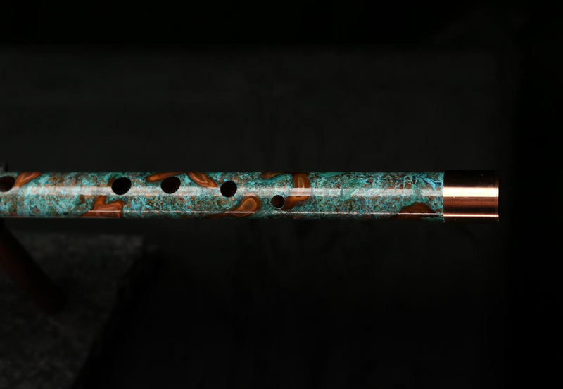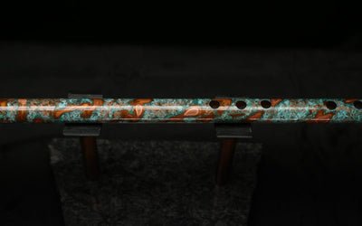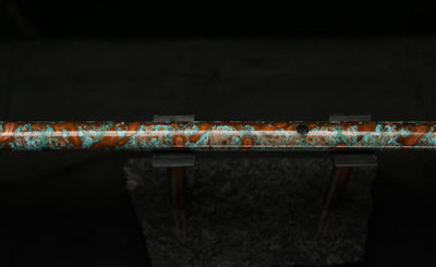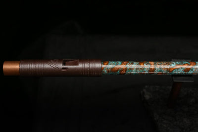 This beautiful flute features a hand-polished rugged copper end-piece that contrasts brilliantly with the patina'd body.