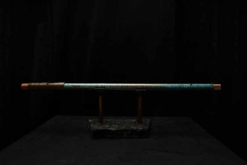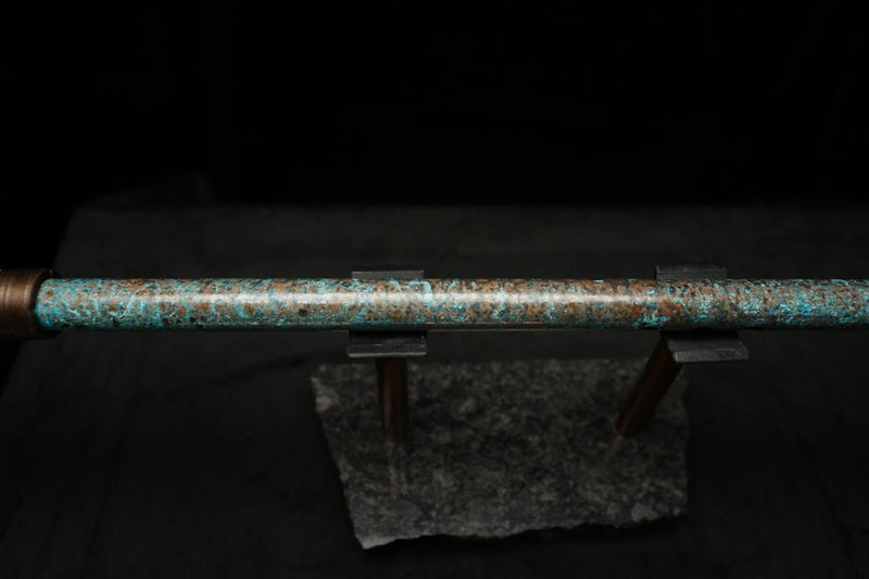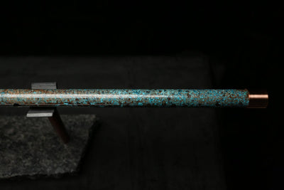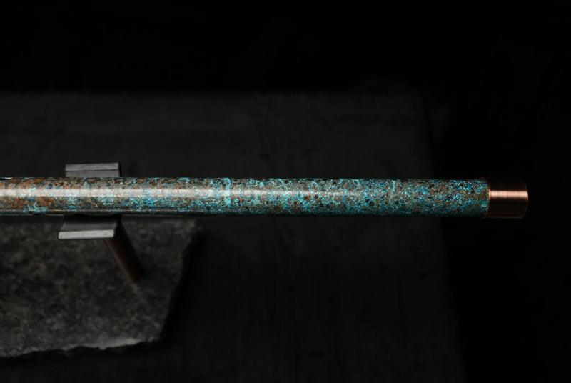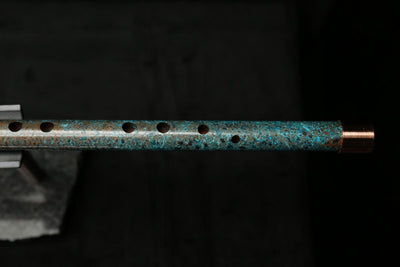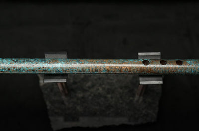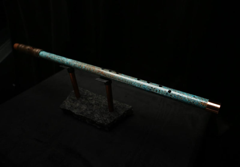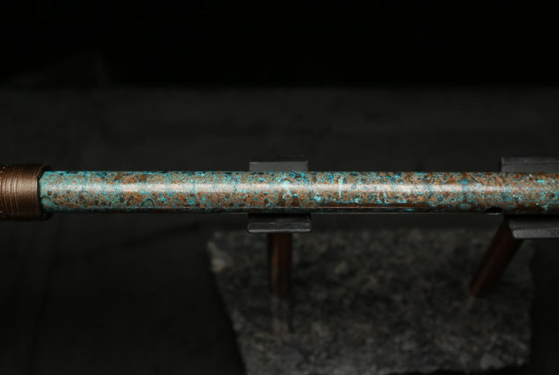 This beautiful flute features a hand-polished rugged copper end-piece that contrasts brilliantly with the patina'd body.