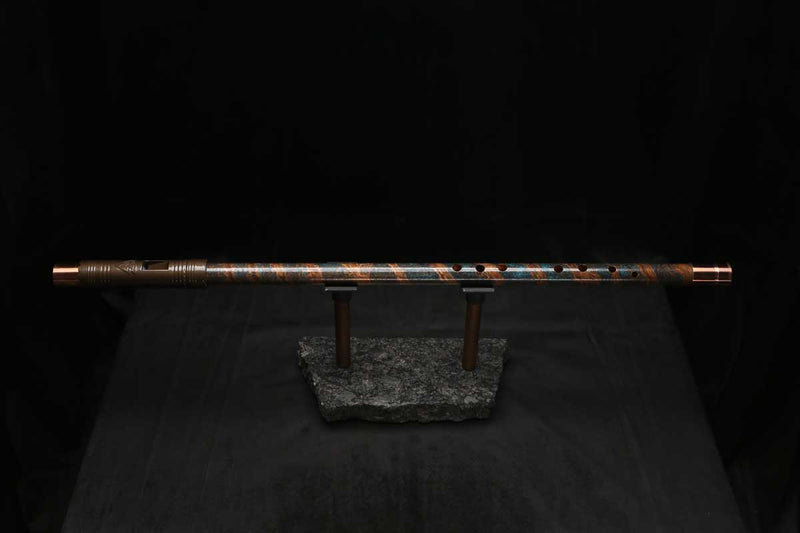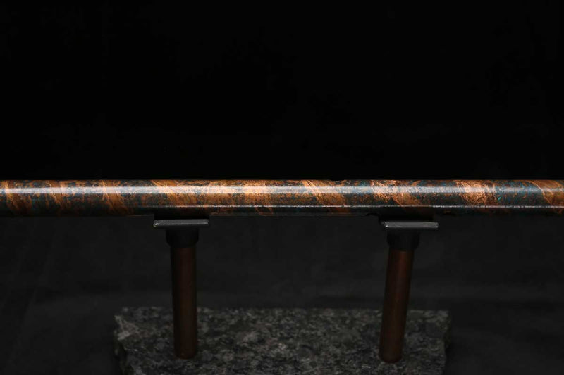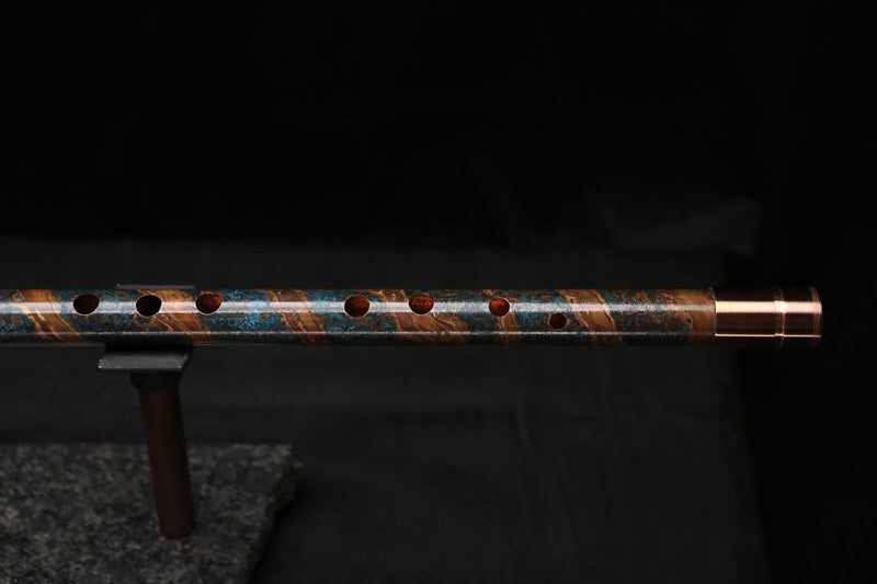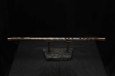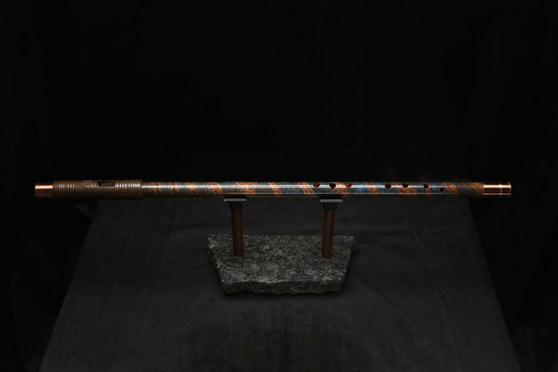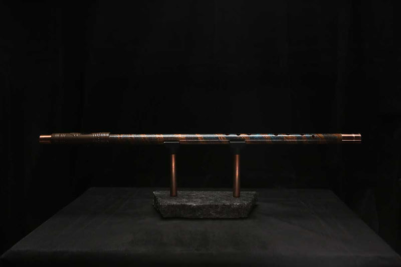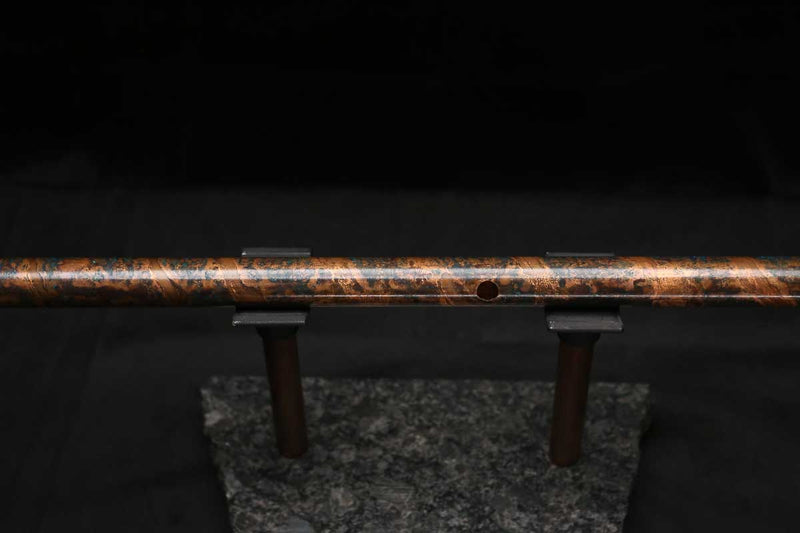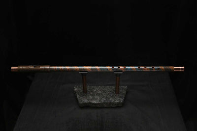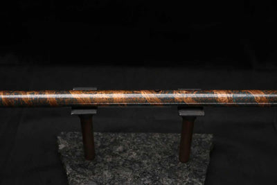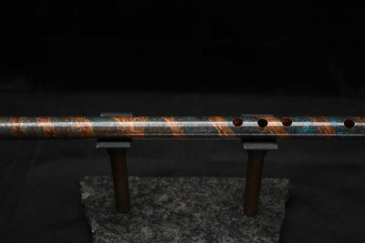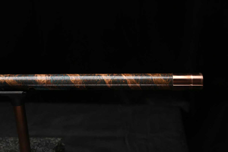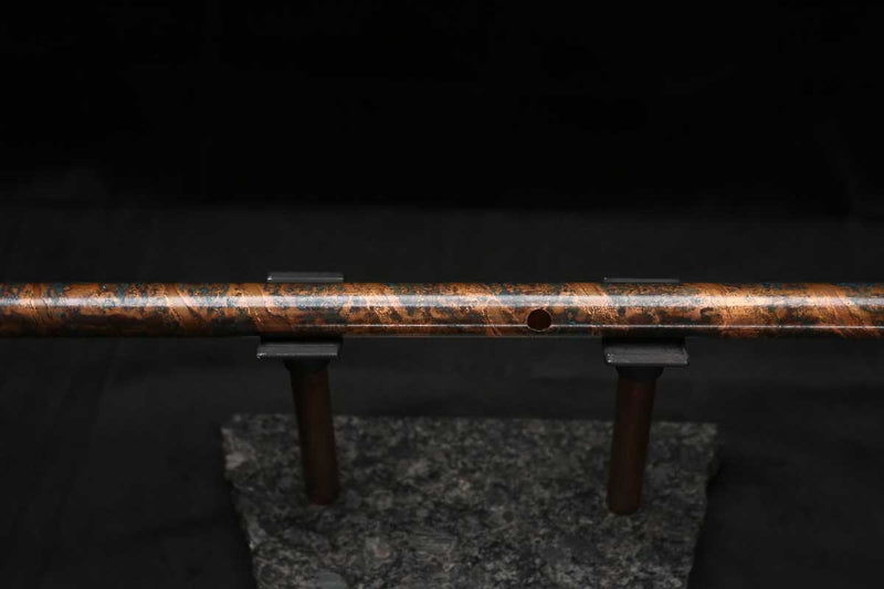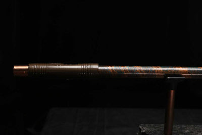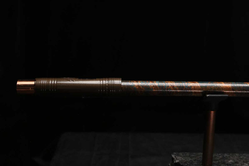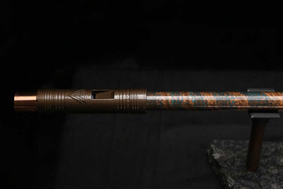 This beautiful flute also features a unique copper end-piece that I've taken to my metal lathe for some extra detail, then hand-polished to a rugged shine that contrasts brilliantly with the patina'd body.