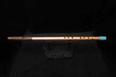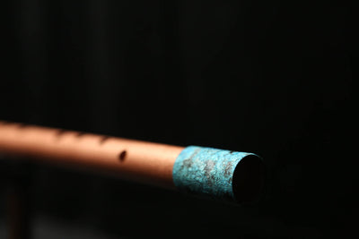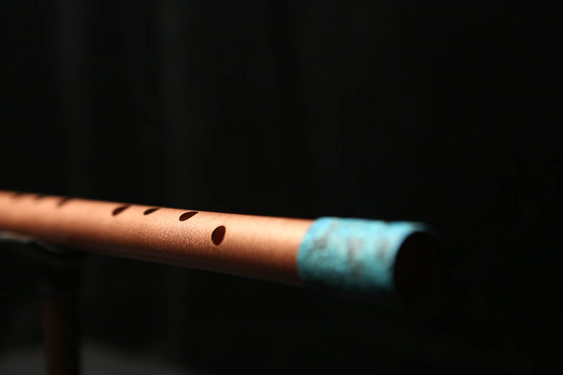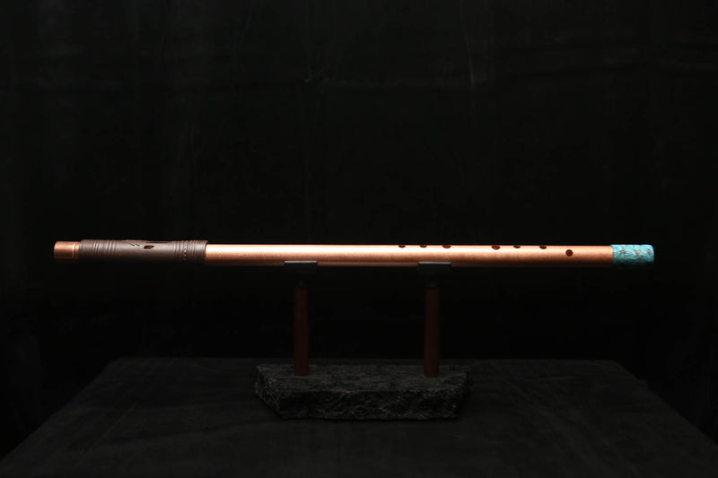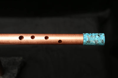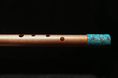 Every Copper Jewel Low D comes with its own unique blue-patina'd end-piece. The one featured here is a good representation of what they look like, but know that yours will be truly unique and special, as no two are exactly alike!