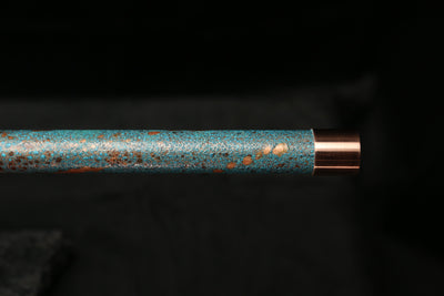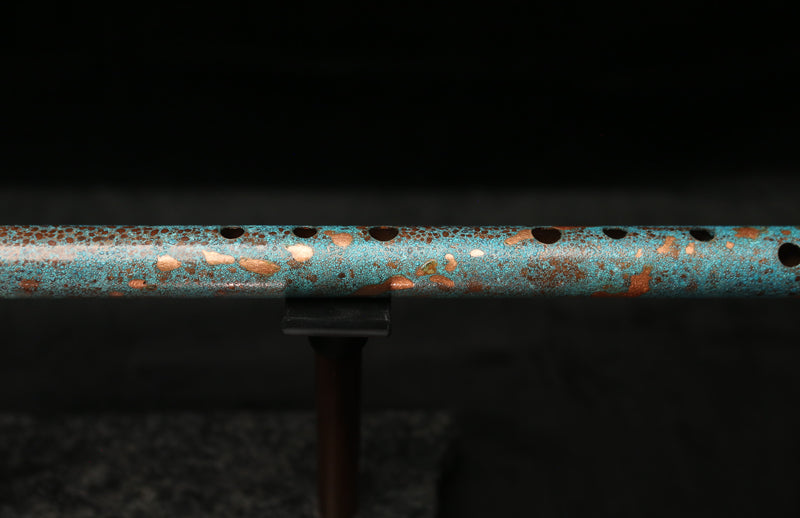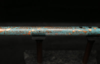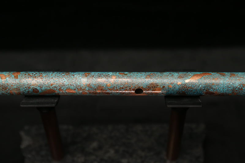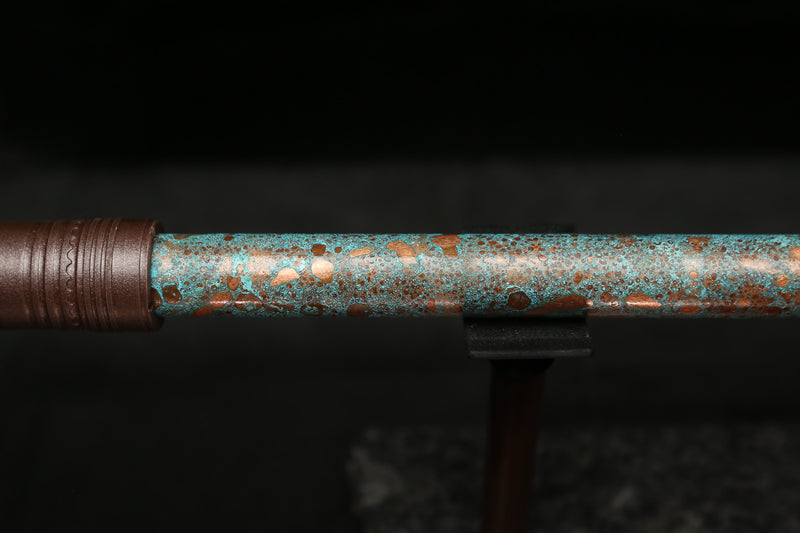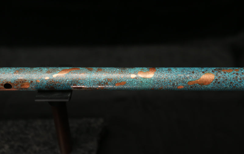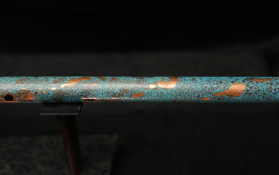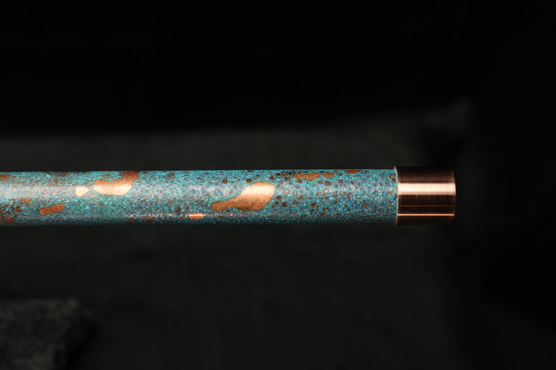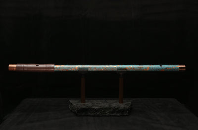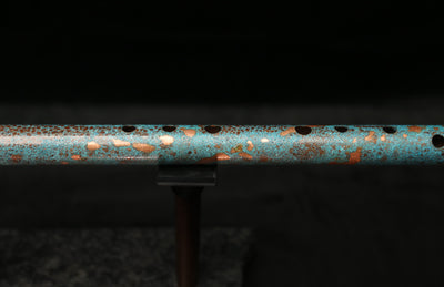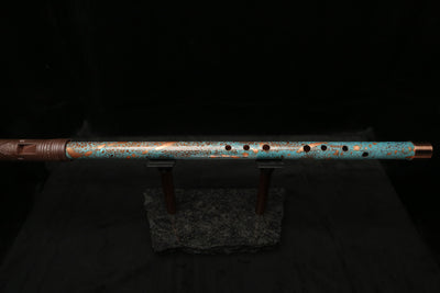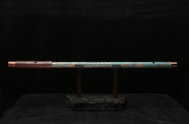 This beautiful flute features a hand-polished copper end-piece that contrasts brilliantly with the patina'd body.