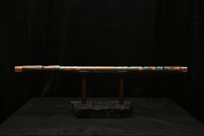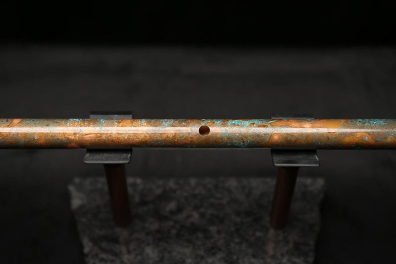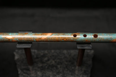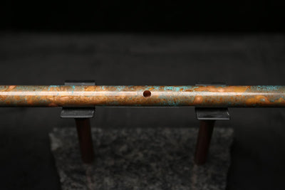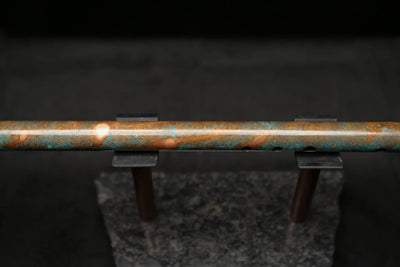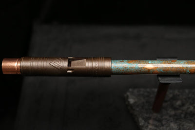 This beautiful flute features a hand-polished rugged copper end-piece that contrasts brilliantly with the patina'd body.