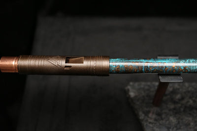This beautiful flute features a special Copper Jewel End Piece. This has been finished to create a multitude of tiny microabrasions that sparkle brilliantly. Only a small handful of flutes have had this special End Piece.