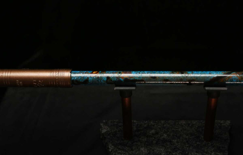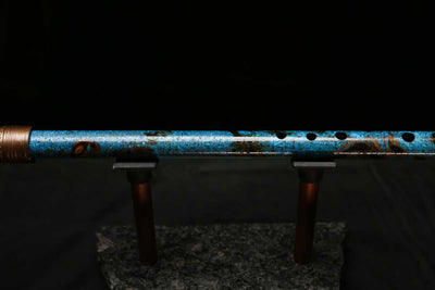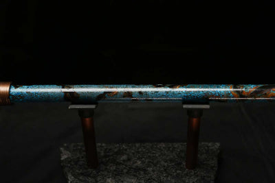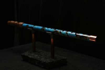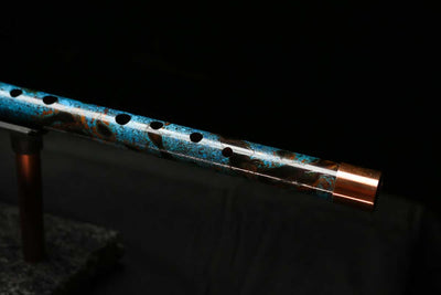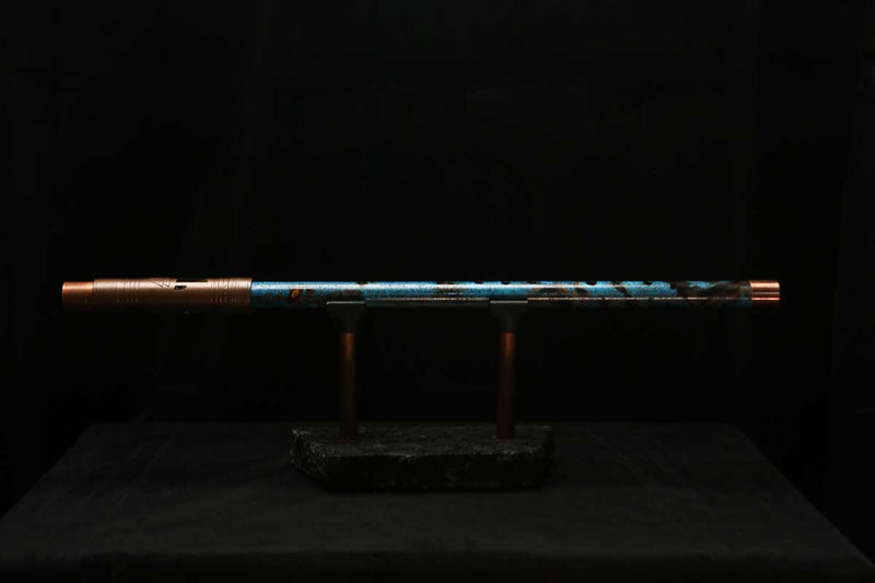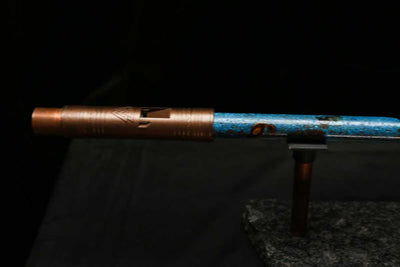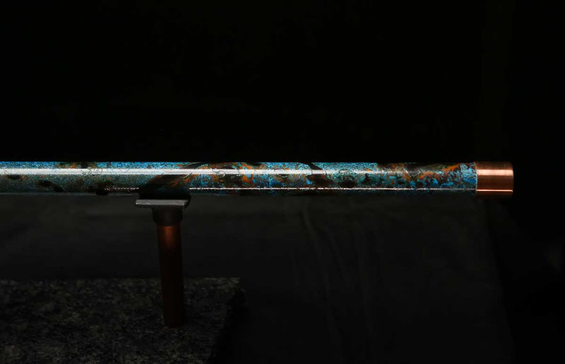 This beautiful flute features a hand-polished rugged copper end-piece that contrasts brilliantly with the patina'd body.